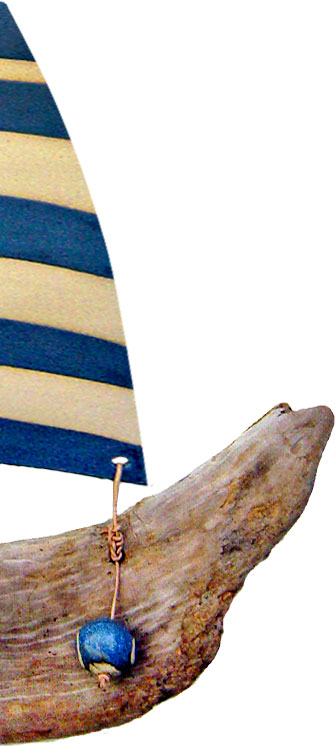 At high tide the harbour is busy and bustling, with mainsails and colourful spinnakers as far as the eye can see and boats moving in all directions. Sails flap on the foreshore as boats launch, whilst further out the sails billow as they capture the wind. The boat series incorporates blue and white ceramic sails of different sizes attached to driftwood with leather or reclaimed rope. From a small nautical gift to a wall hung statement piece for a coastal home, the boat series is a popular choice. There has been some artistic licence with fenders out whilst under sail!
